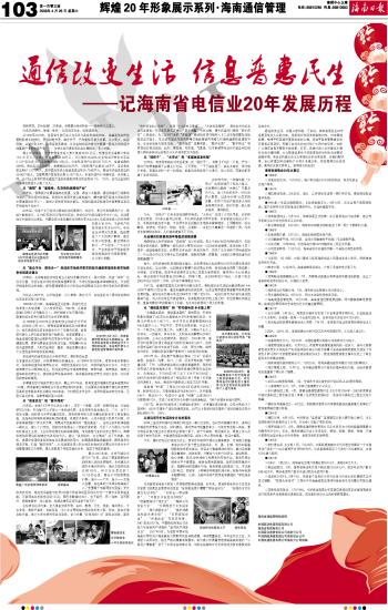 | 第103版:辉煌20年形象展示系列·海南通信管理 |