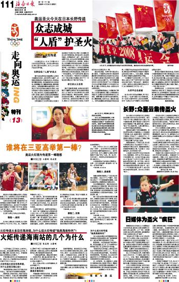 | 海南日报 走向奥运 111 2008-04-261 2008年04月26日 星期六 |