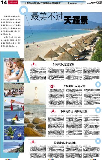 | 海南日报 正在崛起的国际性热带滨海旅游城市———三亚 014 2008-04-261 2008年04月26日 星期六 |