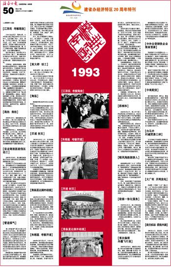 | 海南日报 建省办经济特区20周年特刊 050 2008-04-261 2008年04月26日 星期六 |