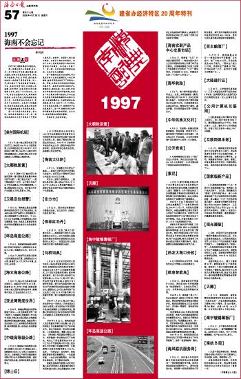 | 海南日报 建省办经济特区20周年特刊 057 2008-04-261 2008年04月26日 星期六 |