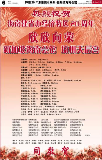 | 海南日报 辉煌20年形象展示系列·新加坡海南会馆 006 2008-04-261 2008年04月26日 星期六 |