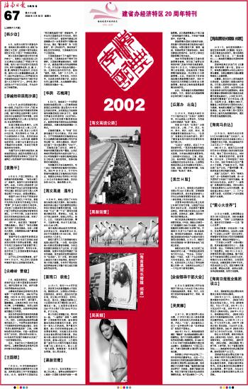 | 海南日报 建省办经济特区20周年特刊 067 2008-04-261 2008年04月26日 星期六 |