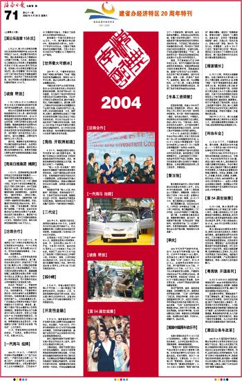 | 海南日报 建省办经济特区20周年特刊 071 2008-04-261 2008年04月26日 星期六 |