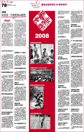 | 海南日报 建省办经济特区20周年特刊 078 2008-04-261 2008年04月26日 星期六 |