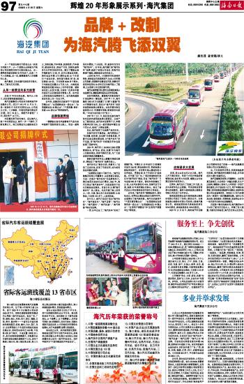 | 海南日报 辉煌20年形象展示系列·海汽集团 097 2008-04-261 2008年04月26日 星期六 |