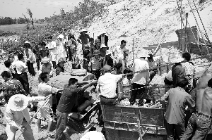 上午9点20分左右,正当李廷仕走到拖拉机后轮处时,20多米高的沙堤突然如潮水般塌了下来。他们还没反应过来,就被塌下来的沙砸倒并被埋进了沙堆里。