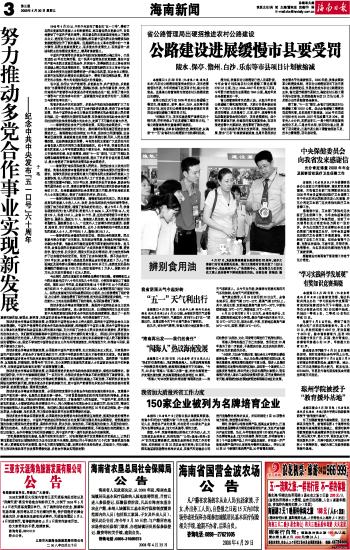 海南日报 海南新闻 003 2008-04-301 2008年04月30日 星期三