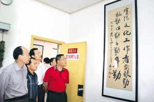 儋州市从今年4月倡导开展“用书画装扮办公环境”和创建“书法市”活动以来,儋州党政机关和企事业单位出现的新气象。