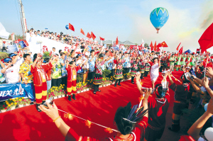 艳阳高照,海风轻拂。上午8时,海口西海岸观海台国旗、奥运会旗交相辉映,群众的欢呼声一阵高过一阵。2008年北京奥运会火炬接力海口市传递起跑仪式在这里举行。
