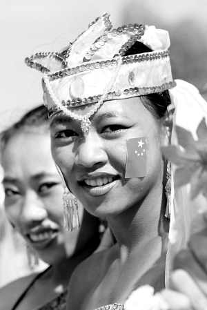 | 5月5日,兴隆农场的华侨女孩笑迎奥运圣火。