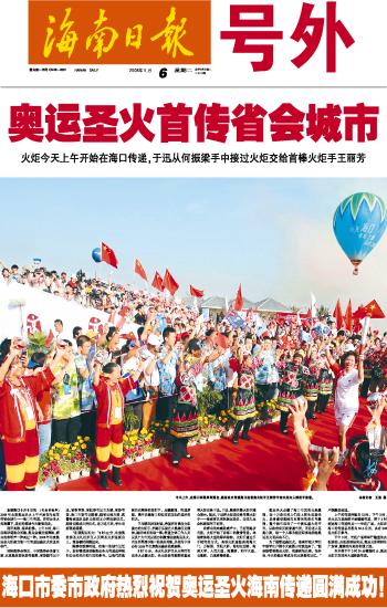 第020版:热烈祝贺奥运圣火海南传递圆满成功!