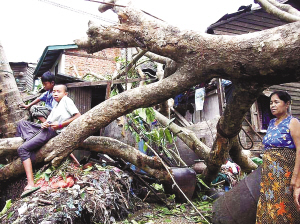 | ← 在仰光,一棵被风刮断的大树倒在一座民居前。 新华社/路透 |