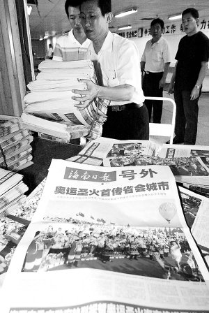 一些读者表示,奥运火炬传递号外很大气,且内容充实,视觉冲击力强,是给海口读者的一份大礼。
