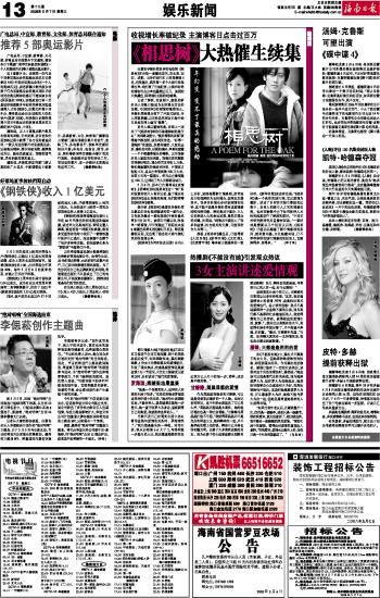 海南日报 娱乐新闻 013 2008-05-071 2008年05月07日 星期三