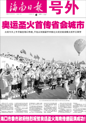 报道说,从《总书记情系海南》长篇通讯,到“踏上总书记考察海南之路”系列报道,《海南日报》将党中央的深切关怀传达到每一个群众心中。从“领袖博鳌”特刊,到完美呈现十位外国元首在博鳌风云际会的图示版,《海南日报》的博鳌亚洲论坛报道令人耳目一新。从精心制作“海南精彩跨越20年”专版,到大型进程式专题报道“前进!海南人民”,《海南日报》一系列精彩动作为庆典增添了浓重节日气氛。从46个版的“海南辞典”面市,到4月26日出版号外,《海南日报》深入挖掘出海南庆祝建省办经济特区20周年所蕴含的深厚思想内涵。