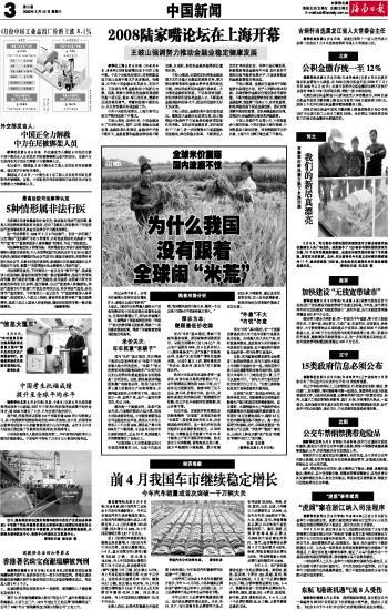 海南日报 中国新闻 003 2008-05-101 2008年05月10日 星期六