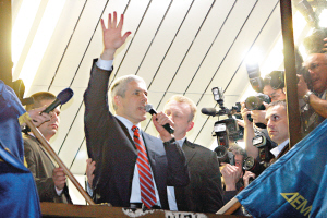 5月11日,塞尔维亚总统塔迪奇在贝尔格莱德向支持者发表讲话。根据非官方的选举监督机构“自由选举和民主中心”11日公布的初步统计结果,塔迪奇领导的“为欧洲的塞尔维亚”竞选联盟在当天举行的塞尔维亚议会选举中获胜。 新华社发