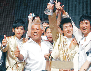 | 陈楚生(右二)在2007“快男”总决赛中夺得冠军