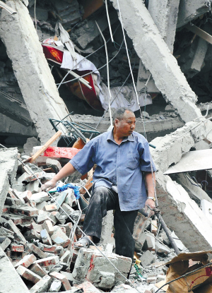 | 5月12日,四川省汶川县发生7.8级地震,与之相邻的都江堰市大量房屋垮塌。