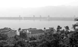 | 5月12日下午,三峡大坝与凤凰山复建文物群交相辉映。新华社发(郑家裕 摄) |