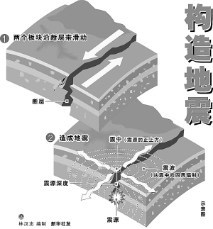 张国民说,地震可按照震源深度分为浅源地震、中源地震和深源地震。浅源地震大多发生在地表以下30公里深度以上的范围内,而深源地震最深的可以达到650公里左右。其中,浅源地震的发震频率高,占地震总数的70%以上,所释放的地震能占总释放能量的85%,是地震灾害的主要制造者,对人类影响最大。
