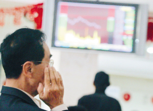 | 投资者担心CPI和出口数据对股市造成负面影响。 本报记者 古月 摄 |