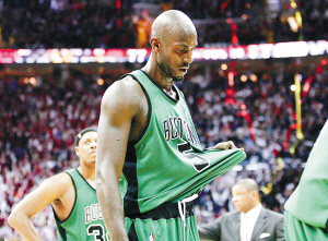 | 凯尔特人队球员加内特黯然离场。新华社发