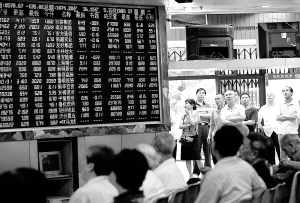 5月13日,股民在重庆一家证券营业部关注股市行情。 当日,受四川汶川地震灾害、央行再度上调存款准备金率等多重利空因素的影响,沪深股市低开低走双双下行,股民心情沉重。 新华社发