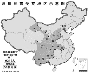 | 国务院抗震救灾指挥部消息:据不完全统计,截至13日19时,四川地震灾区死亡12012人,9404人被废墟掩埋,7841人失踪,收治26206人。