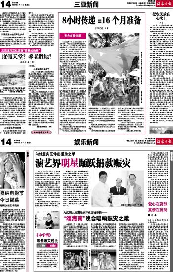 海南日报 三亚新闻 014 2008-05-141 2008年05月14日 星期三