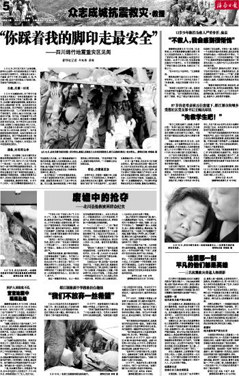 海南日报 众志成城抗震救灾·救援 005 2008-05-141 2008年05月14日 星期三