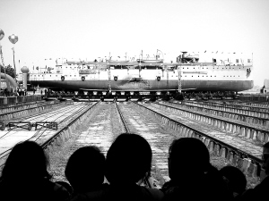 5月15日,市民在观看中山舰下水。 当日,整旧如旧的一代名舰中山舰在武昌下水,计划5月底回归其殉难地湖北武汉金口,落户武汉市为其量身打造的中山舰博物馆。修复后的中山舰不能自航,但已恢复自浮能力,舰体在水上基本能保持平衡,将借助大型漂浮设备“航行”。 1938年10月24日,中山舰在保卫大武汉的战斗中,与敌机激战75分钟后,在武汉金口长江段被炸沉。1997年,中山舰被整体打捞出水。 新华社记者 熊金超 摄