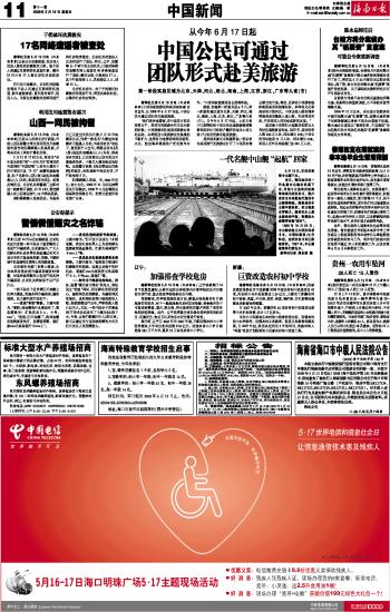 海南日报 中国新闻 011 2008-05-161 2008年05月16日 星期五