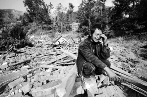| 在青川县红光乡的地震废墟上,一位村民因三位家人生死不明而焦急痛哭。 新华社发 |