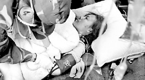 | 周榕被解救出后在军用帐篷内接受紧急治疗。 |