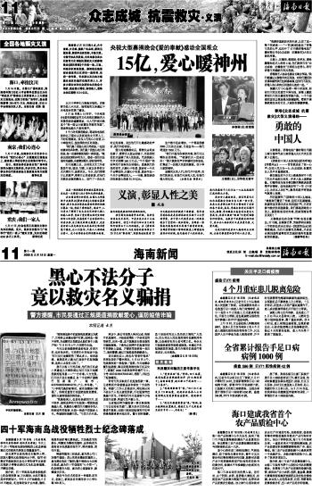 海南日报 众志成城 抗震救灾·义演 011 2008-05-191 2008年05月19日 星期一