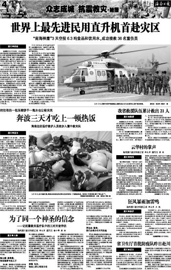 海南日报 众志成城 抗震救灾·驰援 004 2008-05-191 2008年05月19日 星期一