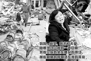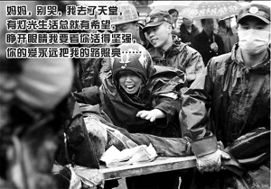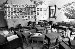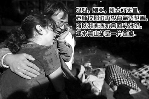 灾难可以摧毁我们的家园,可以夺取人们的生命,今天,也许我们会泪流满面,也许我们会放声痛哭,但任何困难都难不倒中国人民,我们终会擦干泪水,挺起脊梁,继续前进。 妈妈,别哭,我去了天堂, 漫天的星星可都是你的泪光, 黑夜里我不是孤独地流浪, 同学们手牵手嘶哑地歌唱。 本栏 文/北岸