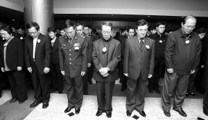 | 纽约当地时间5月19日凌晨2时28分(北京时间5月19日14时28分),中国常驻联合国代表王光亚(前右三)与中国常驻联合国代表团全体人员在驻地与国内人民同步默哀3分钟,对四川汶川大地震遇难者表示深切哀悼。 新华社发 |