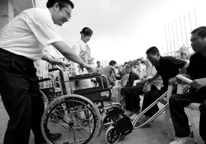 | 每年全国助残日,我省各界向残疾人捐助踊跃。图为某企业向残疾人捐赠轮椅等用品用具。 本报记者 张杰 摄 |
