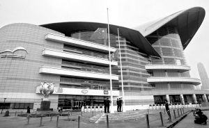 | ↑19日7时55分,香港金紫荆广场下半旗志哀。新华社记者 刘莲芬 摄 |
