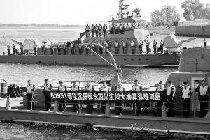 驻黑河某边防巡逻艇大队官兵为汶川大地震遇难者默哀。新华社发 邱齐龙 摄