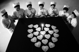| 5月19日,省血液中心的医护人员用烛光和爱心哀悼死难同胞。