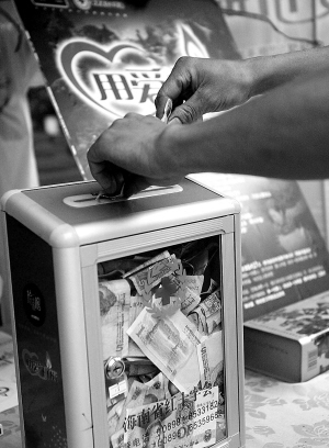 | 5月19日下午, 在海口海秀东路一处捐款点,市民正在奉献自己的爱心。