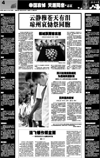 海南日报 举国哀悼 天涯同悲·志哀 004 2008-05-201 2008年05月20日 星期二
