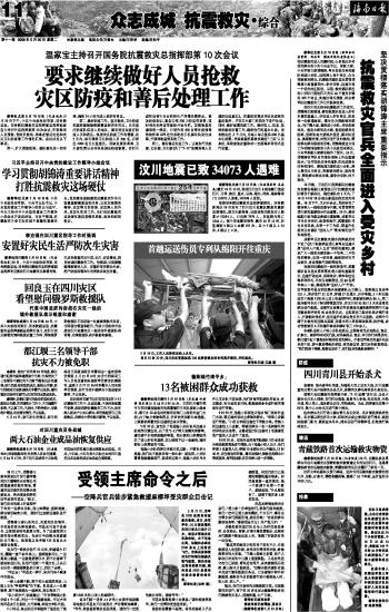 海南日报 众志成城 抗震救灾·综合 011 2008-05-201 2008年05月20日 星期二