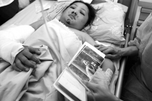 5月20日,一位小姑娘向医生展示她受伤前的照片,她说她有信心变得和以前一样漂亮。 新华社记者 郑悦 摄