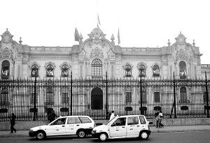 五月十九日,秘鲁首都利马的总统府降半旗向中国四川汶川大地震遇难者志哀。 新华社记者马国强摄