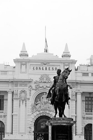 | →秘鲁首都利马国会大楼降半旗向汶川大地震遇难者志哀。